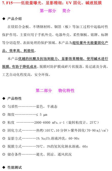 F15——低能量曝光、顯影精細;UV 固化、堿液脫膜