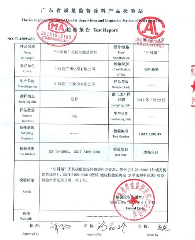 中科翔無機硅酸鹽涂料自身呈現堿性,對菌類和藻類的生長有抑制作用。且無機硅酸鹽涂料中的無機銨能夠殺死菌類和藻類。