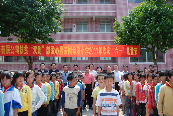5月31日,在 “六一”國(guó)際兒童節(jié)到來(lái)之際,公司董事長(zhǎng)兼黨委書(shū)記廖兵帶領(lǐng)班子成員、黨支部書(shū)記、及化灌公司總經(jīng)理等一行10人深入沙坪鎮(zhèn)茶園村開(kāi)展“扶貧雙到”暨慶“六一”獻(xiàn)愛(ài)心助學(xué)捐贈(zèng)活動(dòng)。