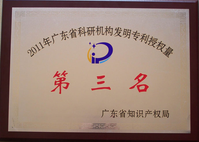 4月10日,廣東省知識產(chǎn)權(quán)局在廣州舉行“2012年全省4·26知識產(chǎn)權(quán)宣傳周活動方案發(fā)布暨國家知識產(chǎn)權(quán)局區(qū)域?qū)@畔⒎?wù)(廣州)中心揭牌、泛珠三角區(qū)域內(nèi)地九省(區(qū))專利信息運用合作協(xié)議簽署儀式”。會議向2011年全省專利發(fā)明授權(quán)量前三位的企業(yè)、高等院校、科研機(jī)構(gòu)和PCT國際專利申請量前三位的企業(yè)、發(fā)明專利申請代理量前三位的代理機(jī)構(gòu)頒發(fā)獎牌。我單位被授予“2011年廣東省科研機(jī)構(gòu)發(fā)明專利授權(quán)量第三名”的獎牌。陳云賢副省長到會講話并代表廣東省人民政府對獲獎單位表示熱烈的祝賀。