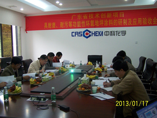 2013年1月17日,中國科學院廣州分院受廣東省經濟和信息化委員會委托,在廣州市組織召開了中科院廣州化學有限公司(廣州化學)承擔的廣東省經濟和信息化委員會2010年廣東省技術創新項目“具耐磨、防污等功能性環氧地坪涂料的研制及應用”(項目編號:20101022108)驗收會。
