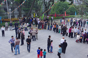 聯歡活動分為集體游戲和文藝表演兩個環節。今年的集體游戲更具娛樂性和趣味性。《猜謎語》、《帶球走》、《投飛鏢》、《圈禮物》、《敲銅鑼》和《投皮球》等六個游戲吸引了眾多的參與人員,每個游戲現場都排起長隊,大家都希望享受游戲帶給他們的快樂!