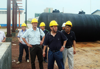2013年6月4日中科院廣州化學有限公司(廣州化學)董事長、黨委書記廖兵檢查廣州化學南雄材料生產基地(南雄基地)設備安裝情況。廣州化學副總經理呂滿庚等陪同。