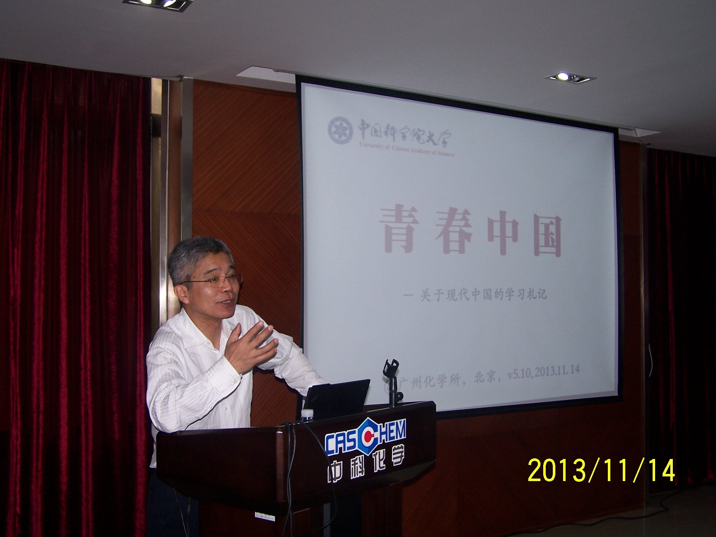 2013年11月14日,中國科學院大學副校長馬石莊教授應邀來廣州化學做了題為“青春中國”的主題講座。科技發展部胡繼文經理主持了此次報告會,廣州化學全體在讀研究生、湛江師院實習生和部分青年職工聆聽了本次報告。