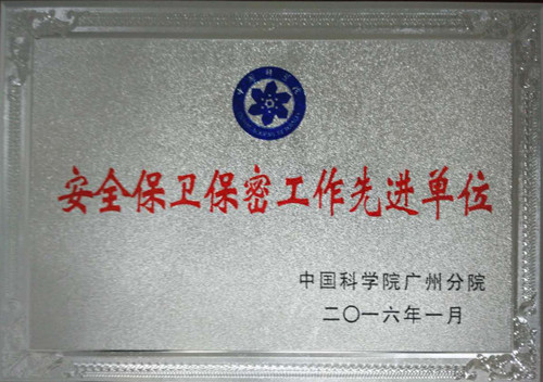 2016年1月22日在中國科學院廣州分院2016年度工作會議上,中科院廣州化學有限公司(廣州化學)獲得“安全保衛保密工作先進單位”榮譽稱號。
