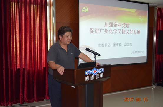 會上,廣州化學(xué)黨委書記、董事長胡美龍以《加強(qiáng)企業(yè)黨建工作促進(jìn)廣州化學(xué)又快又好發(fā)展》為主題做專題報告,他帶領(lǐng)全體參會人員認(rèn)真學(xué)習(xí)了黨中央、中國科學(xué)院黨組、中國科學(xué)院企業(yè)黨委關(guān)于加強(qiáng)企業(yè)黨建工作的精神,介紹了廣州化學(xué)在加強(qiáng)企業(yè)黨建工作開展的各項工作和各部門在加強(qiáng)企業(yè)黨建工作的方面的責(zé)任,他要求廣州化學(xué)黨委與經(jīng)營班子一道,樹立和踐行“發(fā)展是硬道理,業(yè)績是金標(biāo)準(zhǔn)”的企業(yè)價值觀,建立“責(zé)任在于落實,行勝于言”的企業(yè)文化,共同推動廣州化學(xué)的快速發(fā)展。