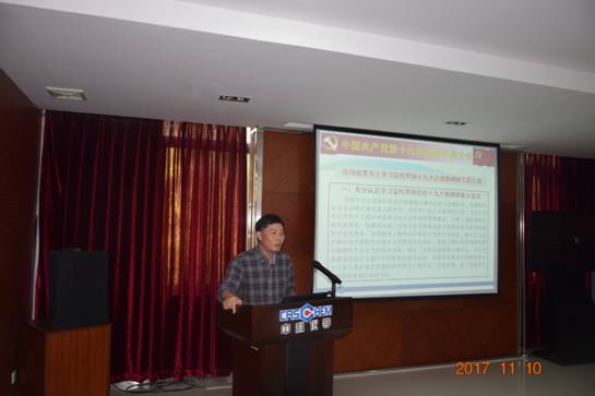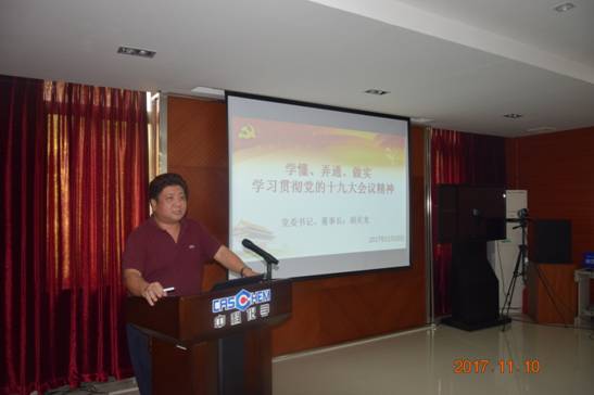 會上,廣州化學黨委書記、董事長胡美龍以《學懂、弄通、做實 學習貫徹黨的十九大會議精神》為主題做專題學習輔導,他帶領全體參會人員認真學習了黨的十九大報告并提出廣州化學在學習宣傳貫徹黨的十九大會議精神的各項要求,他指出黨的十九大繪就了黨和國家未來發展的新藍圖,我們要緊密團結在以習近平同志為核心的黨中央周圍,高舉中國特色社會主義偉大旗幟,解放思想,改革創新,銳意進取,埋頭苦干,全面貫徹黨的十九大精神。他要求廣州化學全體黨員要通過中心組學習、支部學習、黨員交流等多渠道全方位地進行學習宣傳貫徹黨的十九大精神和廣東省委在學習宣傳貫徹黨的十九大精神方面的有關要求,讓每一個黨員每一個員工都能切實按照習近平總書記的要求“學懂、弄通、做實”黨的十九大精神,切實將黨的十九大精神落實到企業的經營發展中。