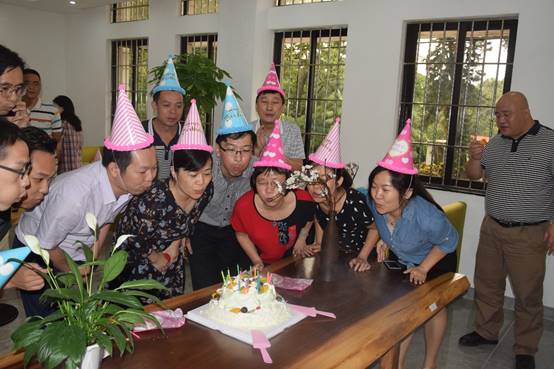 七月生日的員工們一起點(diǎn)燃蠟燭,在生日歌聲中許下心愿,工會(huì)為每位壽星們精心準(zhǔn)備了小禮物,大家在歡聲笑語(yǔ)中品嘗美味的蛋糕……