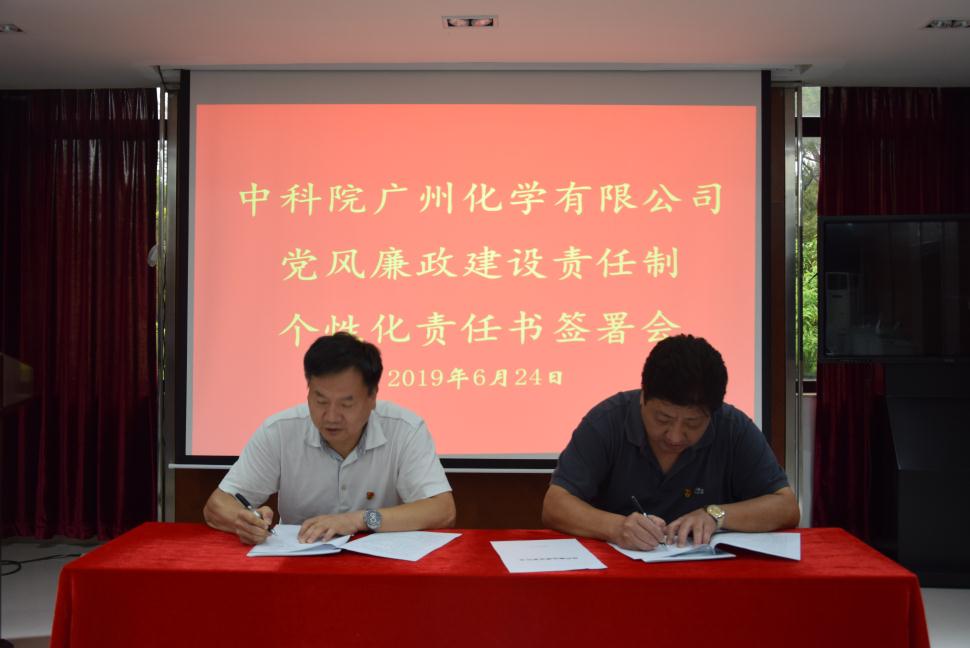 為貫徹落實全面從嚴治黨的總體要求,深入推進中科院廣州化學有限公司(廣州化學)黨風廉政建設和反腐倡廉工作,6月24日,廣州化學召開了《黨風廉政個性化責任書》(責任書)現場簽署會,廣州化學中層及以上領導干部、控股公司總助以上領導干部、在職黨支部書記參加會議,會議由廣州化學黨委副書記、紀委書記申智慧主持。