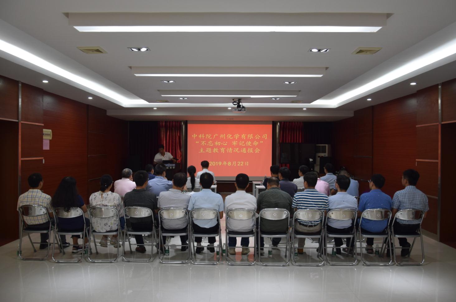 8月22日,中科院廣州化學有限公司(廣州化學)黨委召開“不忘初心、牢記使命”主題教育(主題教育)情況通報會。主題教育第14指導組組長黃良民等到會指導。會議由廣州化學黨委書記胡美龍主持。廣州化學黨委委員、紀委委員、中層及以上領導干部、控股公司總助以上領導干部等24人參加會議。
