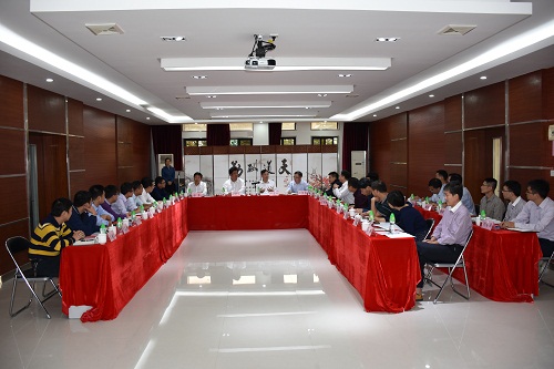 鄧麥村一行首先參觀了廣州化學承建的中國科學院新型特種精細化學品工程實驗室,然后聽取了廣州化學工作匯報。