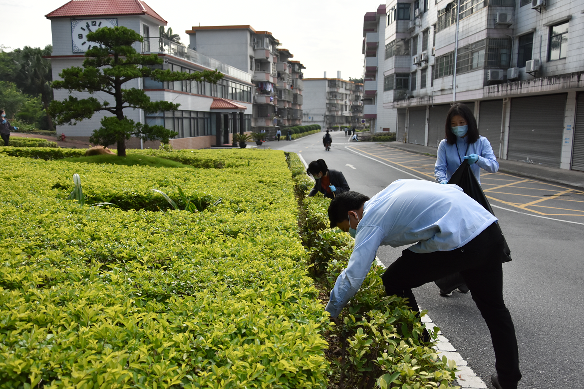 活動(dòng)當(dāng)天,春風(fēng)和煦,綠意盎然,大家手持清潔工具仔細(xì)搜索所屬片區(qū)的垃圾,花壇中、草叢中,小到一個(gè)煙頭、一張碎紙片都不放過(guò),認(rèn)真清理我們的家園。