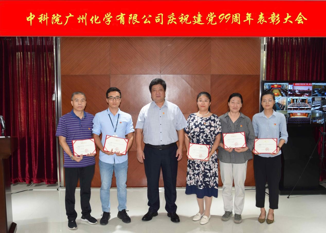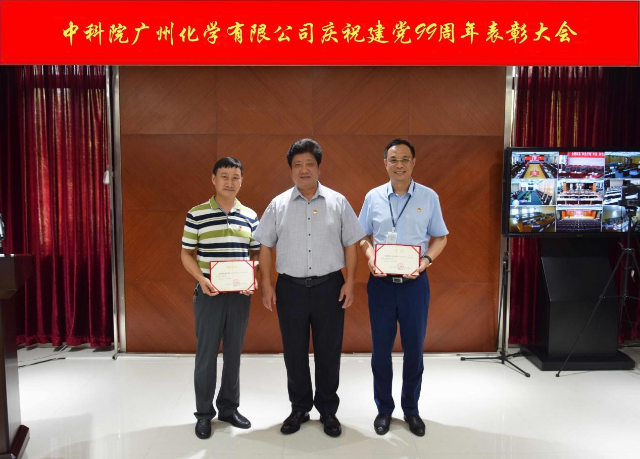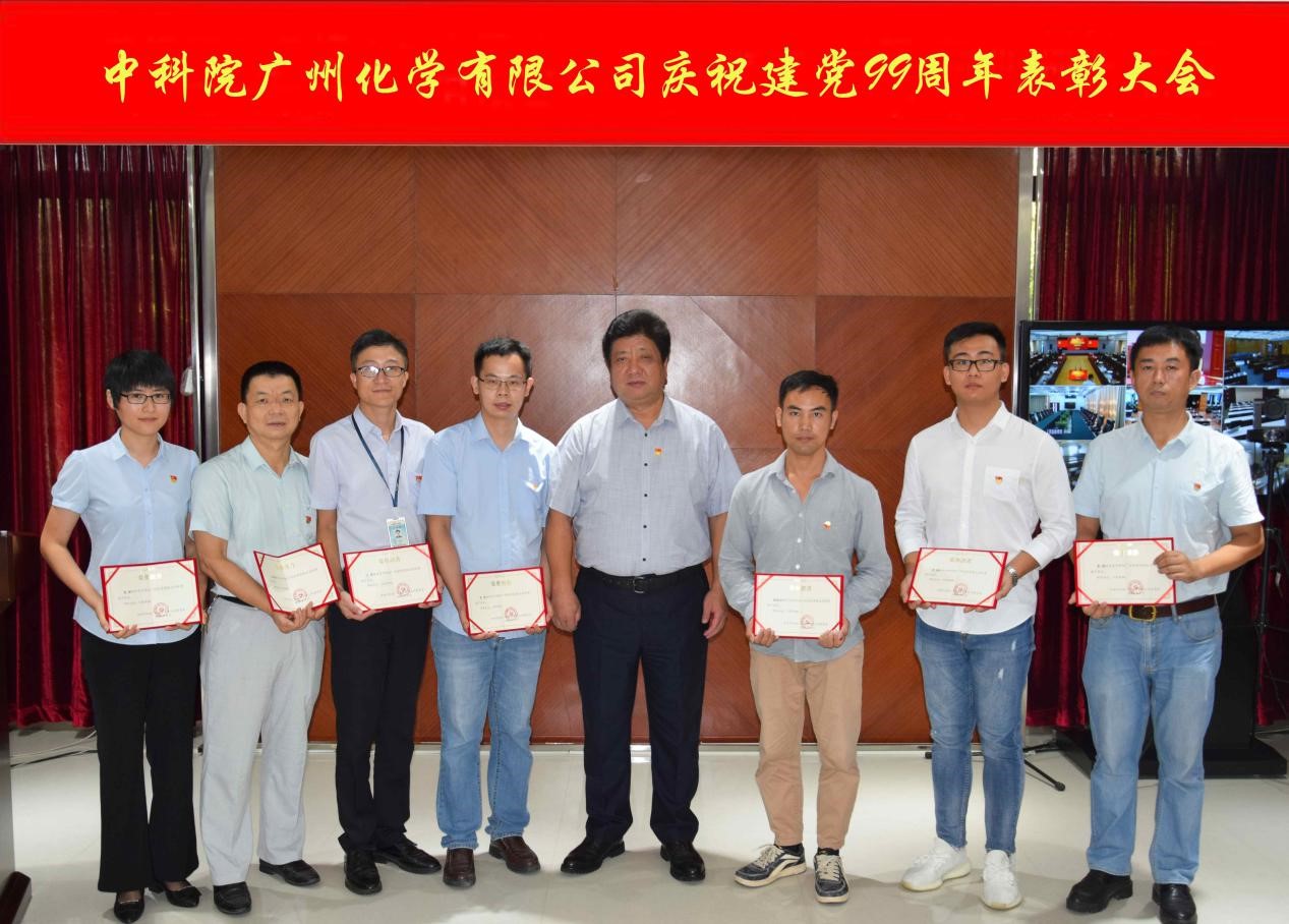 7月1日,為慶祝中國共產黨成立99周年,進一步深化中科院廣州化學有限公司(廣州化學)“不忘初心、牢記使命”主題教育成果,發揮各黨支部的戰斗堡壘作用和黨員的先鋒模范帶頭作用,弘揚樹立典型、弘揚正氣的企業文化,廣州化學召開了慶祝建黨99周年表彰大會,廣州化學黨委書記胡美龍為獲獎人員和支部頒獎并合影留念。