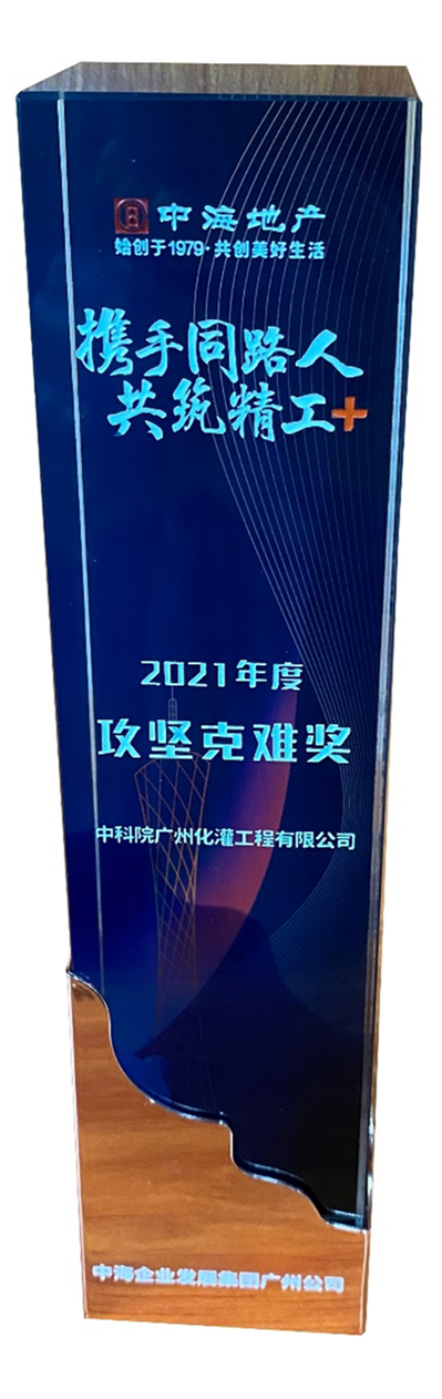 3月26日,在中海企業(yè)發(fā)展集團(中海地產(chǎn))廣州公司舉辦的主題為“攜手同路人 共筑精工+”的2021年度合作商表彰大會上,中科院廣州化學有限公司控股公司——中科院廣州化灌工程有限公司(化灌公司)榮獲2021年度“攻堅克難獎”。