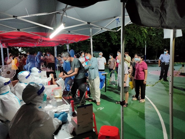 根據(jù)廣州市防疫工作安排,中科院廣州化學(xué)有限公司(廣州化學(xué))園區(qū)所有職工及園區(qū)居民需在6月4-6日內(nèi)完成核酸檢測(cè)。在廣州化學(xué)黨委的統(tǒng)一部署下,經(jīng)與街道及居委商量,為了方便園區(qū)職工與居民,在廣州化學(xué)園區(qū)內(nèi)設(shè)置1個(gè)核酸檢測(cè)采樣點(diǎn)。同時(shí)廣州化學(xué)立即組織了以入黨積極分子、預(yù)備黨員、青年黨員等人員組成的信息員工作小組,以及后勤保障組,在核酸檢測(cè)采樣點(diǎn)搭建雨棚、布置場(chǎng)地、保障電力網(wǎng)絡(luò)、進(jìn)行區(qū)域劃分等。并根據(jù)員工及居民人數(shù)制定了初步參檢時(shí)間表,以防止人員聚集。