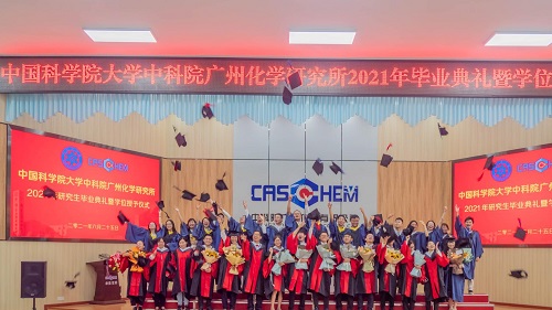 畢業典禮暨學位授予儀式在莊嚴雄壯的《國歌》聲中拉開序幕。胡美龍首先致辭,他感謝畢業生為廣州化學快速發展做出的貢獻,代表廣州化學對畢業生們圓滿完成學業、順利畢業表示祝賀,并寄語畢業生勇擔使命,在奮斗中書寫青春的華章。梁利巖研究員作為導師代表發言,博士研究生屈貞財作為畢業生代表發言。隨后,胡繼文宣讀2021年授予學位名單,胡美龍為每一位畢業生撥穗正冠、頒發研究生畢業證書。