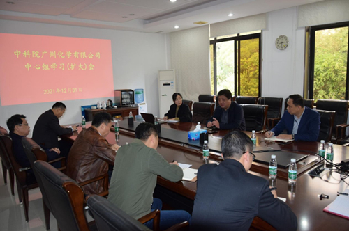 12月31日,中科院廣州化學有限公司(廣州化學)召開黨委理論中心組(擴大)專題學習會議,廣州化學全體黨委委員、領導班子成員參加會議,會議由廣州化學黨委書記、董事長胡美龍主持。