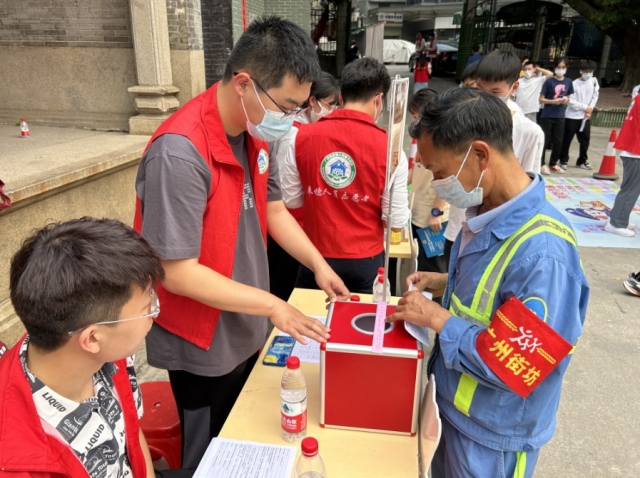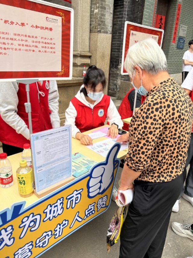 此次活動中,志愿者們來到天河區(qū)天園街道棠下鐘氏宗祠,身穿志愿服以知識問答小游戲、發(fā)放宣傳冊等形式為社區(qū)居民和過往群眾開展了以黨史知識、雷鋒精神、預(yù)防詐騙和“積分入學(xué)”為主題的宣傳活動。同時帶領(lǐng)周邊學(xué)校學(xué)生參觀了作為天河區(qū)文物保護單位的棠下鐘氏祠宗祠,在廣大青年中弘揚優(yōu)秀的嶺南廣府文化,并讓新廣州人感受到“來了就是廣州人、來了就是天河人”的開放與包容。志愿者們熱情的服務(wù)和豐富的活動內(nèi)容獲得了參與活動群眾的一致好評。