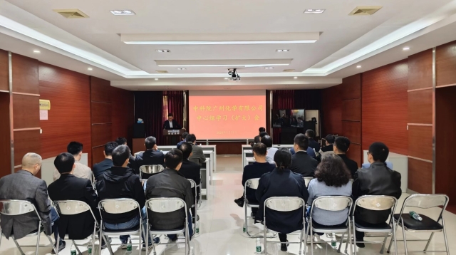1月11日,中科院廣州化學有限公司(廣州化學黨委)黨委召開黨委理論中心組(擴大)學習會議,廣州化學中層及以上領導干部、黨委委員、紀委委員、控股公司總助以上領導干部、在職及研究生黨支部書記參加會議,會議由廣州化學黨委副書記(主持工作)、副董事長(主持工作)葉崢主持。